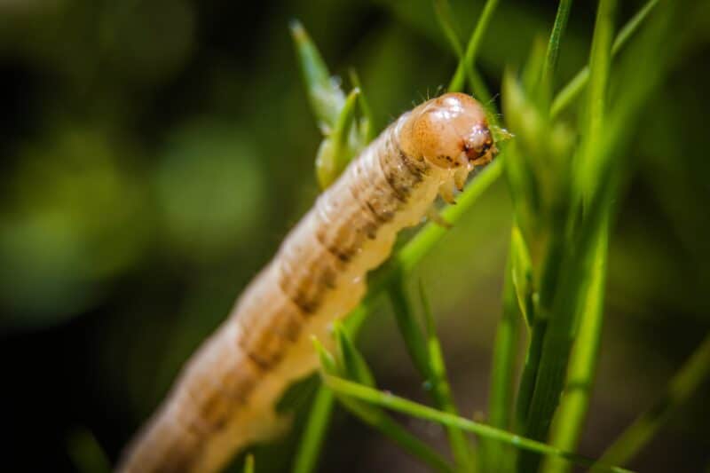 Armyworms are usually green, yellow, or white and look similar to many other species. You can tell these apart from the rest by the white Y marking on the back of their heads.